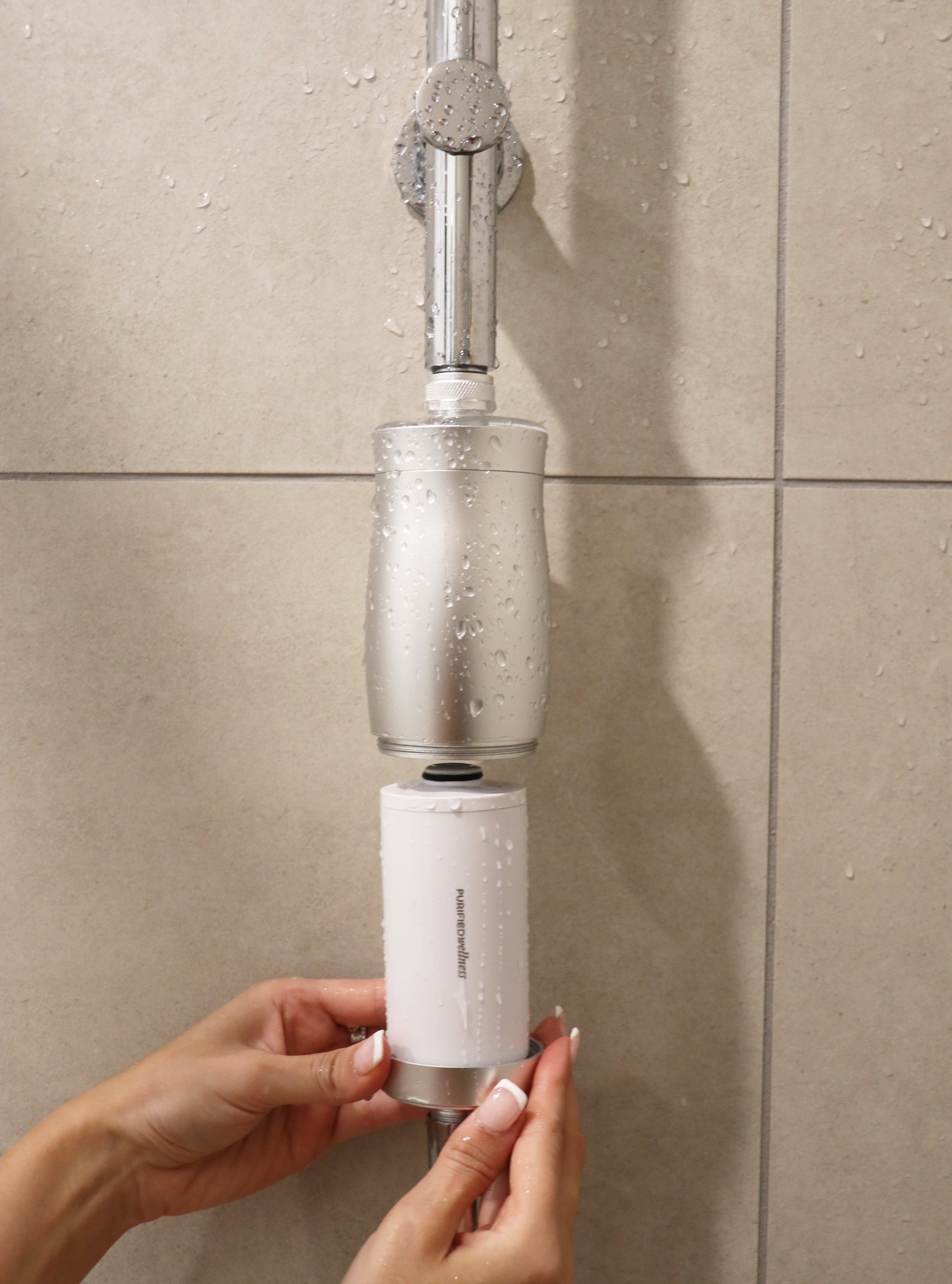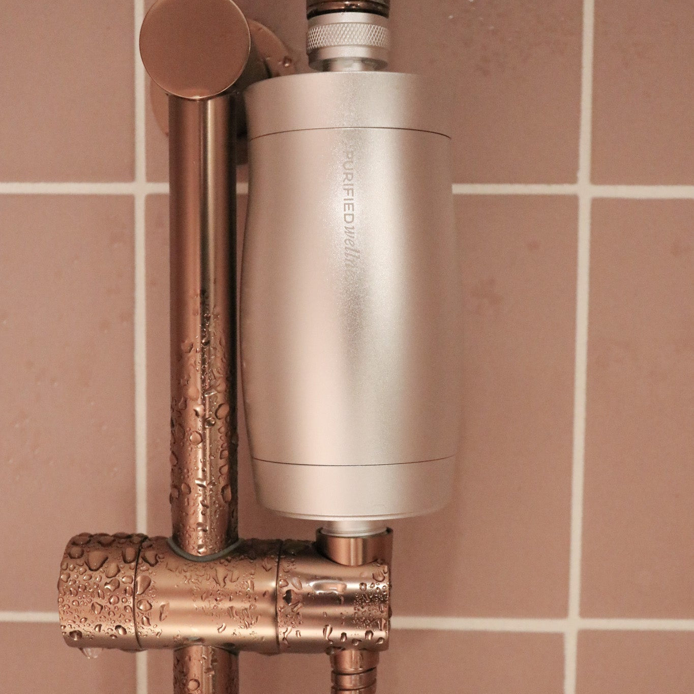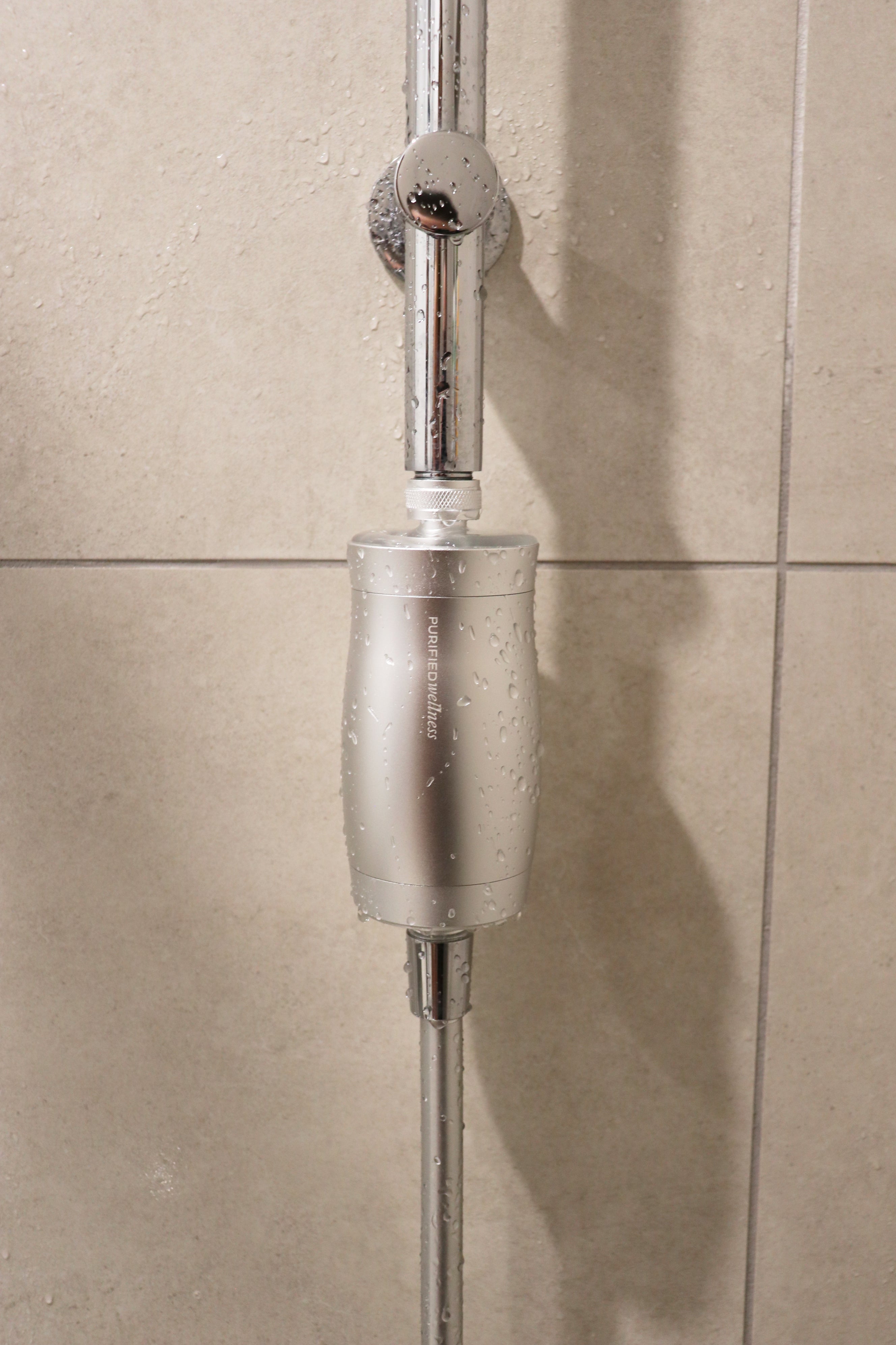 Unveil the beginning of a refined wellness ritual. Inside your Purified Wellness box, discover a meticulously crafted shower filter, elegantly designed, fully assembled and ready to transform the simple act of showering into a moment of restoration.