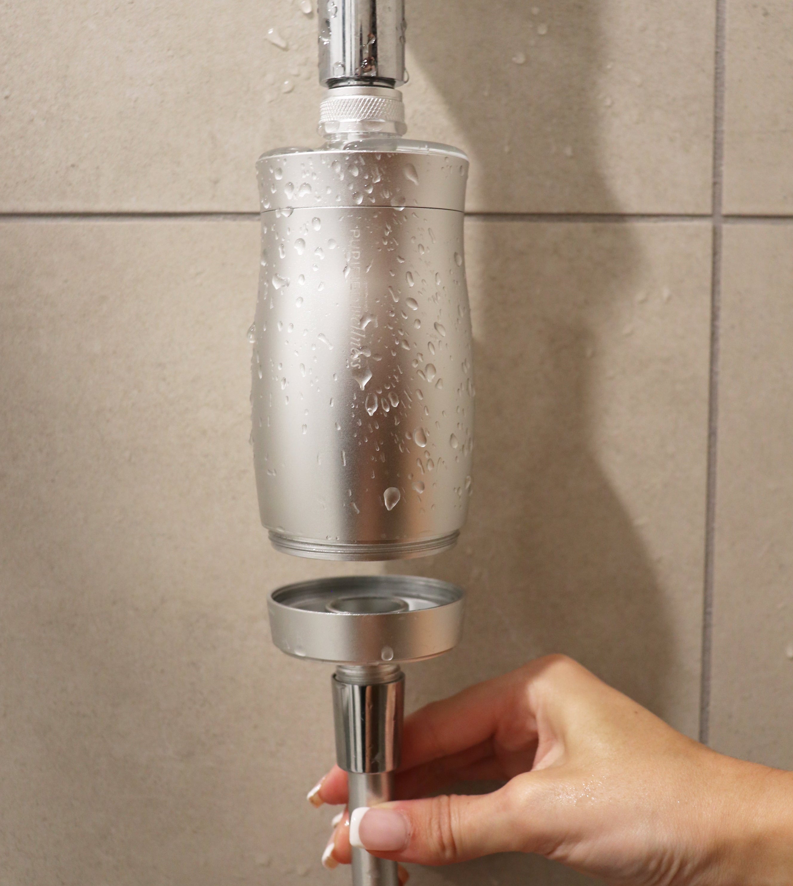 3. Reattach your shower head onto the other end of the Purified Wellness Filter. Turn on the water to check flow and enjoy your first spa-inspired shower.